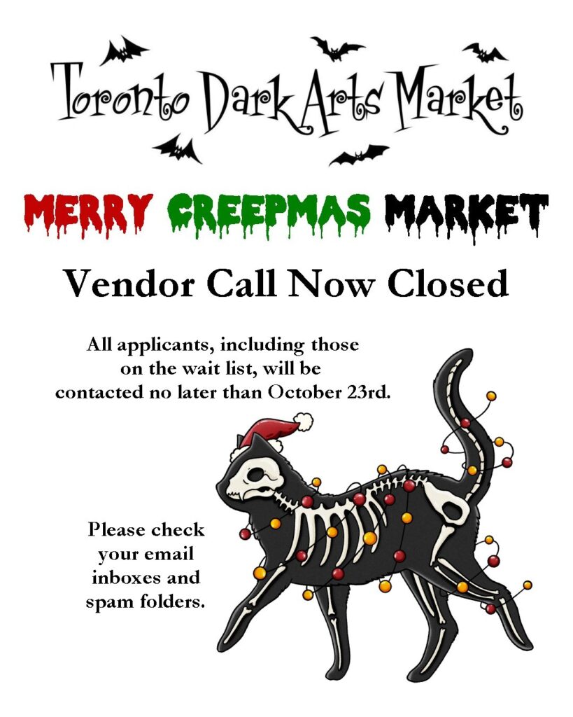 The vendor call for our Merry Creepmas Market on December 6th is now closed. We thank everyone who expressed interest in taking part.