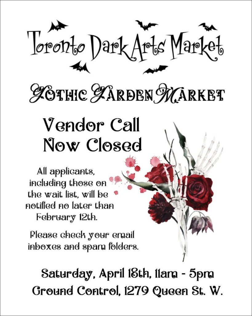 The vendor call for our Gothic Garden Market on April 18th, 2026 is now closed. We thank everyone who expressed interest in taking part.