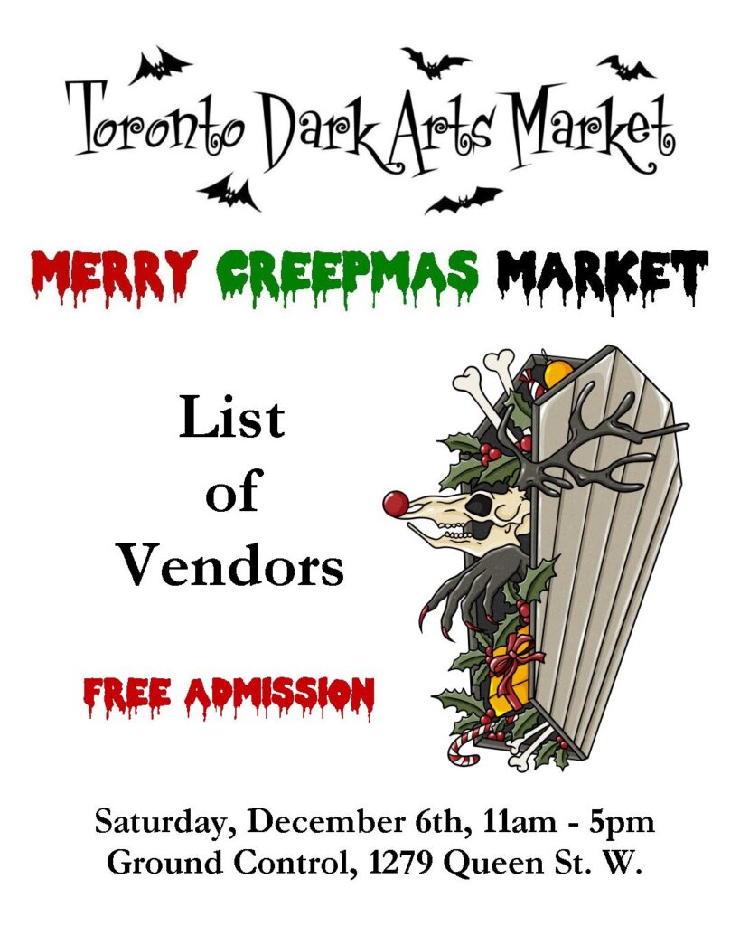 Make a list. Check it twice. Cross-reference it against this group of amazing, talented artists and artisans. Then come and visit us on December 6th for our Merry Creepmas Market!