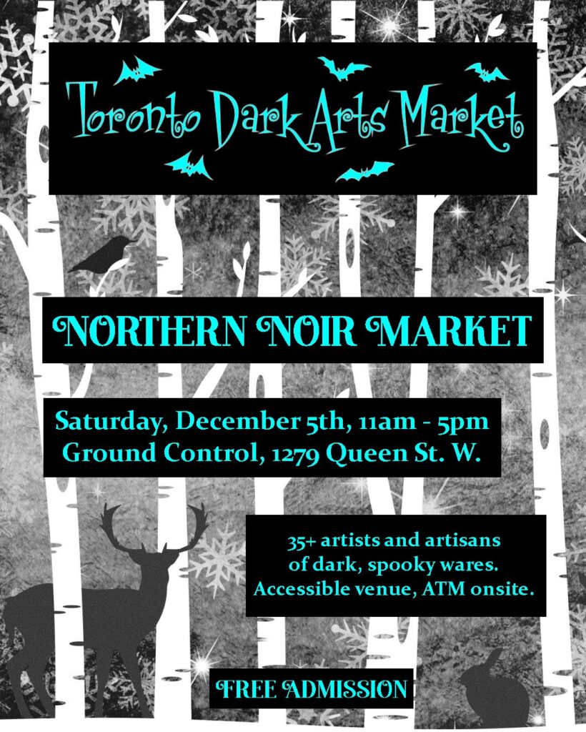 Please come in out of the cold and join us at Ground Control on Saturday, December 6th from 11am – 5pm when we’ll be hosting 35+ artists and artisans celebrating all aspects of the season, especially those that are dark, macabre and spooky.